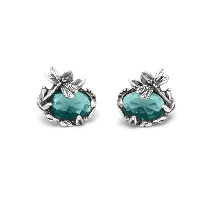 עגילי כסף סטרלינג עם קוורץ בצבע אזמרגד