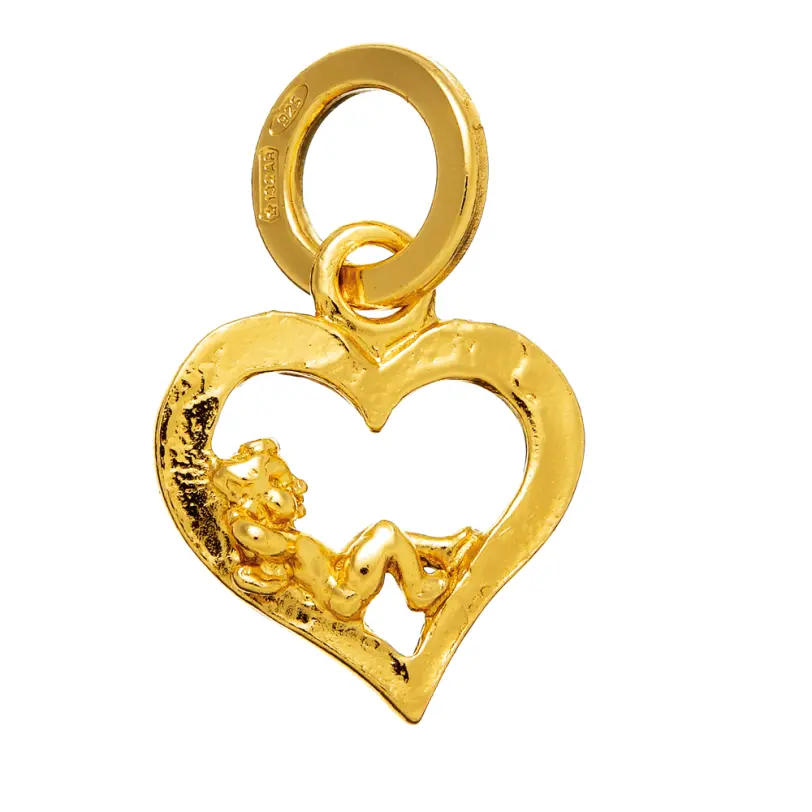 GOLD-PLATED CUPID ON HEART CHARM תליון כסף
