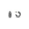 עגילי Petit Perlage מעודנים וקורנים משלבים אומנות ועיצוב עכשווי. נוצרו בטכניקת יציקת שעווה אבודה, וכוללים משטח כסף מלוטש מעוטר בפאבה של מיקרו-כדורים משובצים יהלומים עדינים. עבודת יד באיטליה.
