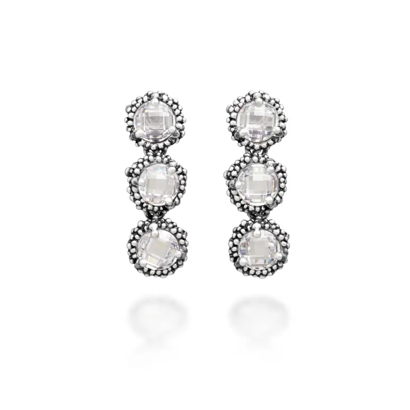 עגילי ה-Shine משדרים פרצי אור ויופי, ומשלבים את הטוהר של זירקונים שקופים עם האלגנטיות העכשווית של עיטור פרלאז' מכסף מלוטש שנוצר על ידי יציקת שעווה אבודה. עבודת יד מלאה בסדנאות Giovanni Raspini.